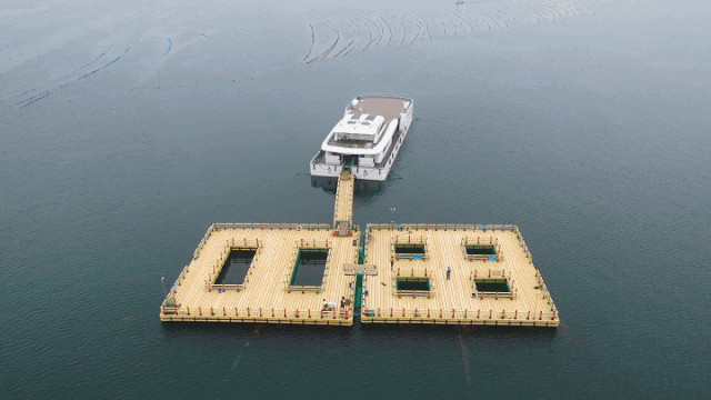 ??????海洋牧場的海上平臺共分三層,除了可以在頂層甲板上登高望遠,享受海風日光之外,還可以在負一層的海底觀光區,近距離探秘水下故事,接觸海洋生物,看看海帶、牡蠣是如何在海里“壕橫”生長的。