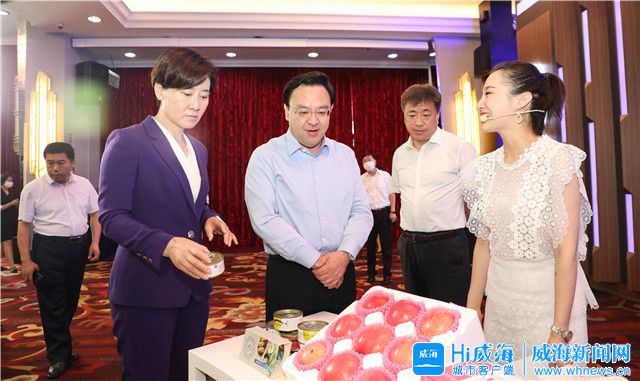 在云開(kāi)幕儀式現(xiàn)場(chǎng),閆劍波視頻連線榮成泰祥食品股份有限公司線上展館,詢問(wèn)參展企業(yè)市場(chǎng)開(kāi)拓、品牌推廣等情況,希望企業(yè)進(jìn)一步發(fā)揮技術(shù)優(yōu)勢(shì)、市場(chǎng)優(yōu)勢(shì),通過(guò)互聯(lián)網(wǎng)平臺(tái),讓威海更多名優(yōu)特新食品農(nóng)產(chǎn)品走向全國(guó)、走出國(guó)門。