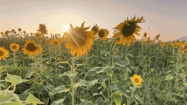 ??????向日葵文藝又狂野,安靜里蘊藏著熱烈,一眼望去超壯觀,金燦燦的向日葵花海,配上藍天白云,像極了宮崎駿動漫里的場景!