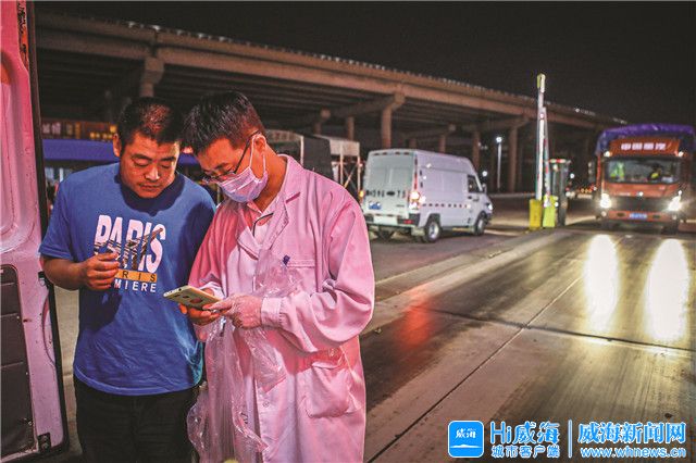 ??????“我們需要取部分菜樣進行快檢,看看有沒有農殘超標。”7月22日晚9時許,在威海市農副產品批發市場貨運入口過磅處,山東食安檢測技術有限公司檢測員董文明和同事對一輛輛運輸車進行農產品取樣。