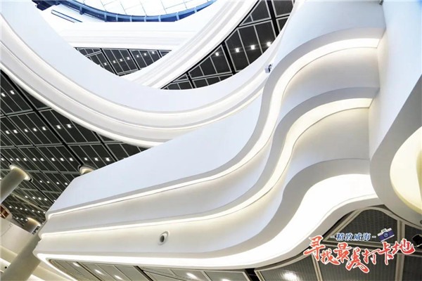 市圖書館占地面積4.2萬平方米,位居全省第二,整整有七層樓,整體造型融入“大海”的元素,兩側黃色大理石像人的雙臂擁抱大海,象征著圖書館是知識的海洋。