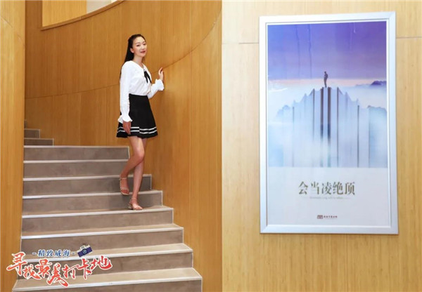 圖書館最具有設計感的樓層,便是連接五、六樓的“書山”,沒錯,就是用書籍壘起的“高山”,有著“書山有路勤為徑”的寓意,這里也是整個圖書館最佳觀景平臺。