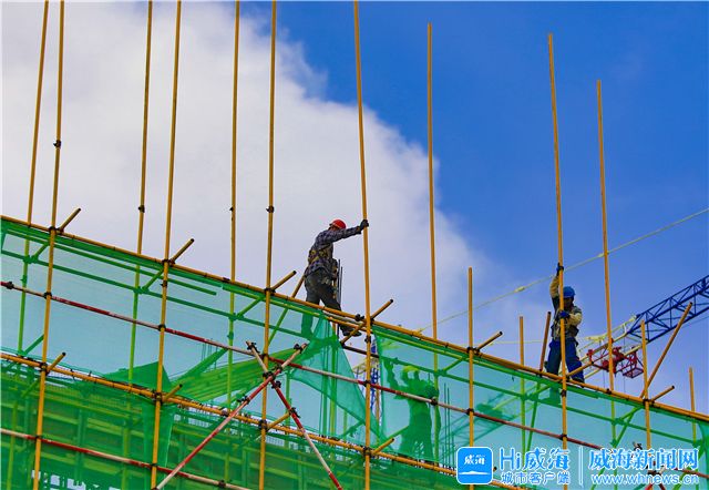 ??????炎炎烈日,奮斗的姿態最美。向每一位高溫下堅守的建設者,致敬!(Hi威海客戶端記者 孫世超/文 孫大偉 楊正 劉志鵬/圖)