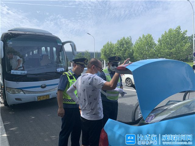 ??????8月10日早8點半,在威海站前的疏站路上,市交通運輸綜合執法支隊環翠區大隊的3位隊員早早擺好了“陣勢”,對來往的車輛進行執法檢查?!澳愫茫埮浜蠙z查,這是我的電子執法證,麻煩出示你的營運證、上崗證?!标爢T們一天的工作往往都是以這句話開啟。