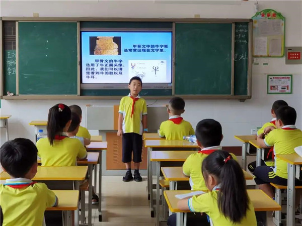 該校針對不同年級學(xué)生的實(shí)際,分別通過“甲骨文知識講座,甲骨文卡片猜猜看,甲骨文故事我來講,我筆下的甲骨文”等不同板塊,引導(dǎo)孩子們對漢字之源有更深入的了解,進(jìn)一步感受古老文字中散發(fā)的魅力,增強(qiáng)孩子們對傳統(tǒng)文化的探索興趣,自覺弘揚(yáng)中華優(yōu)秀傳統(tǒng)文化。