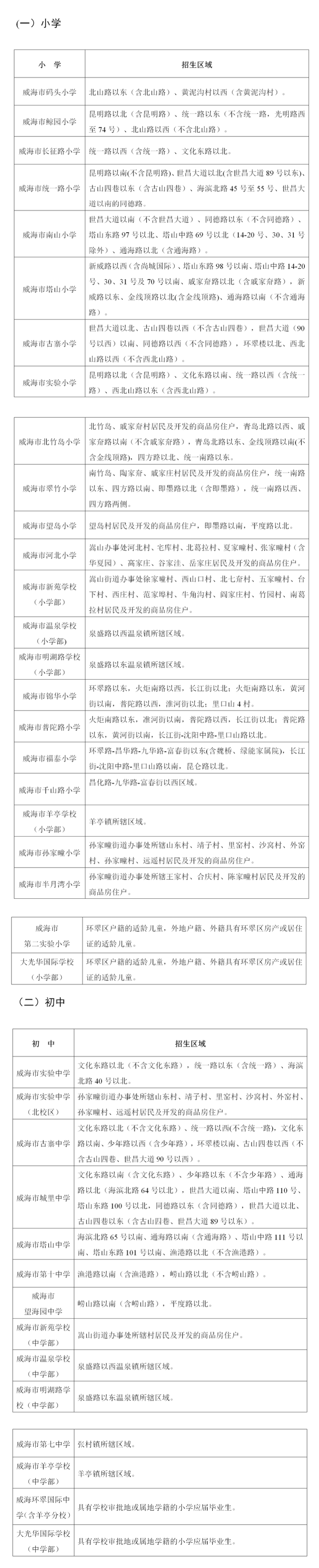 ??????2. 初中招生對象:環翠區戶籍及外來務工人員隨遷子女的小學應屆畢業生。