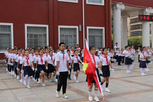 ????伴隨鏗鏘有力的鼓樂,護旗方隊的少年們步伐矯健,神采奕奕;五星紅旗在莊嚴的國歌聲中冉冉升起,全體師生肅穆敬禮,目光堅定,歌聲嘹亮,充滿無限理想的新學期已然揚帆起航。