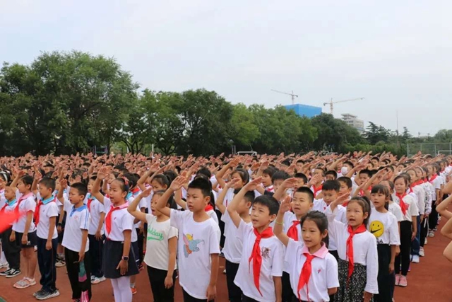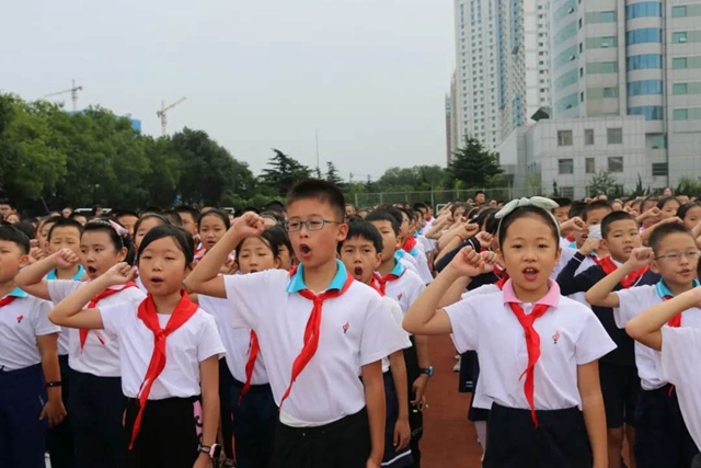 ?????9月7日,高新區第一小學全體師生相聚校園國旗臺下,鄭重舉行新學期開學典禮。