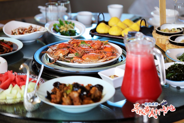 ????等到晌午,在漁人碼頭餐廳嘗一嘗地道的膠東海鮮,這里有琳瑯滿目的海鮮自助,也有獨具特色的海鮮蒸鍋,無論哪款都真實地還原了大海的味道。