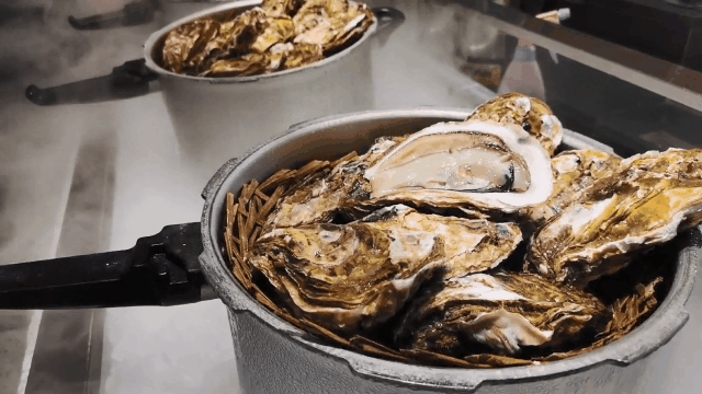 威海人對(duì)海鮮的吃法相當(dāng)質(zhì)樸,用最簡(jiǎn)單的方式留住食物原始的味道,蠔堡里的高壓鍋竹籠蒸蠔就將這一點(diǎn)發(fā)揮得淋漓盡致。一整鍋生蠔竄著氣就被直接端上來,隨著店員一句霸氣的“祝您‘蠔’氣沖天”,鍋蓋被打開,帶著鮮味的蒸汽撲面而來,巴掌大小的乳山深海蠔讓人垂涎三尺。