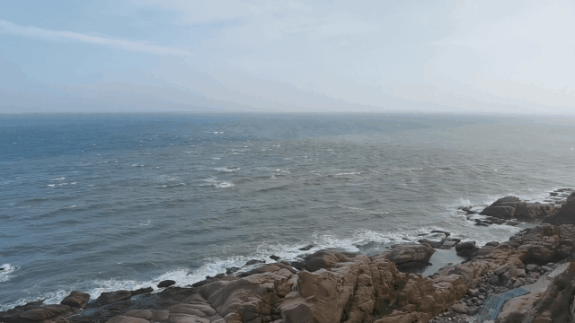 正如詩中所說“東臨碣石,以觀滄海”,只有當你站立在危巖峭拔的“天盡頭”旁,才能真正感受到成山頭的氣勢。對面是浩瀚碧藍的大海,是一望無垠的蒼穹,耳邊是海浪拍打岸礁的撞擊聲,是海鷗清脆嘹亮的叫聲,是陣陣海風的呼嘯聲……
