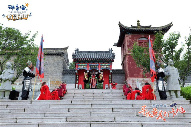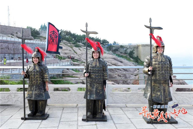 你還有機會在這里觀看到大型歷史情景演藝《成山行》,《成山行》根據秦始皇兩次東巡成山頭的歷史改編而成,再現了秦始皇拜日的盛景。從始皇廟出發,始皇拜日儀仗隊行至天盡頭廣場,在簡單表演后,始皇率眾人威嚴地走向天盡頭。