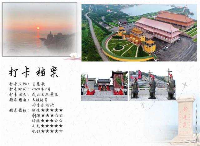 俗話說,“地下秦文化看陜西,地上秦文化看成山頭”。歷史賦予了神奇,也流傳著美麗的傳說,秦始皇曾兩次駕臨成山頭,留下了“秦橋遺跡”“秦代立石”“射鮫臺”“秦丞相李斯手書‘天盡頭秦東門’”等歷史遺跡和人文景觀。