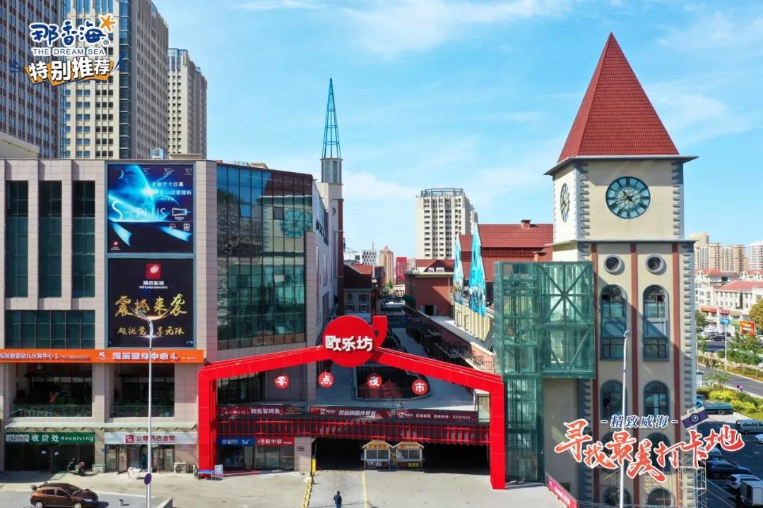 ????? 還未走進歐樂坊,遠遠便能瞧見門頭旁的鐘樓,深紅色的塔尖高高翹起,歐式的時鐘綴在上方,古樸凝重。