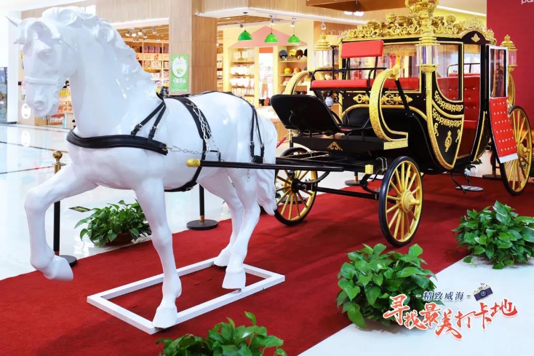 街區不遠處,一輛馬車靜靜矗立著,風格自成一派。坐在旋轉木馬上,瞧著紅檐拱門的建筑由遠及近,頗具現代感的游樂設施和歐式風格的街區在視線中交疊,恍惚間似是身處巴黎街巷,夢幻又浪漫。