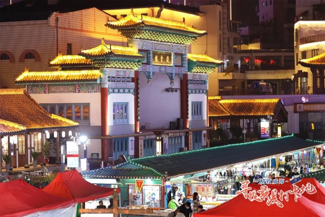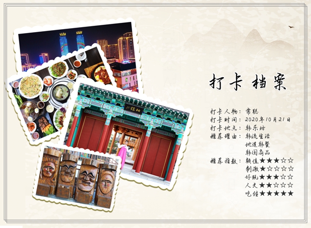 ????伴隨著打糍粑的聲音,夜市開始了。韓式炸雞、炒年糕等各種韓式小吃大放異彩,憑借其正宗的口味吸引眾多游客慕名前來,沿街還有各種韓式服裝和飾品的小攤,仿佛行至韓國特色街。