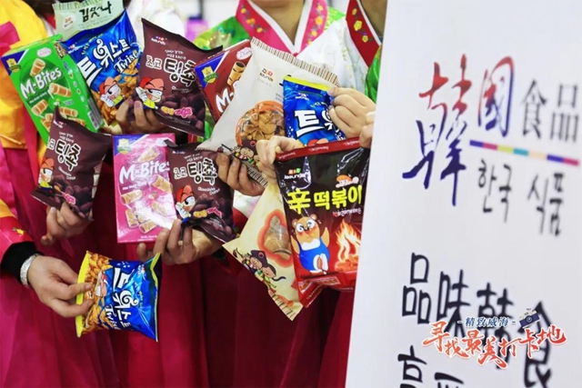 ????韓樂坊內(nèi)的店面大多用韓文、中文兩種語言書寫,各種韓國衣飾店、餐飲店、造型店羅列,走在這兒,時不時便能聽到來往行人口中的韓語腔調(diào)。還有琳瑯滿目的韓國商品,等待游人挑選。