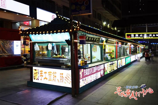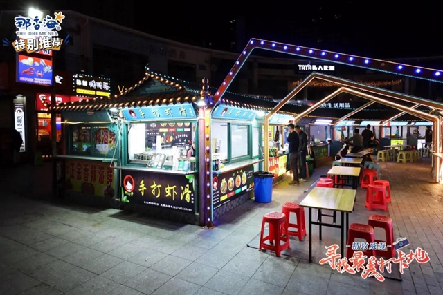 ????夜色漸深,五湖四海的食客紛至沓來,大家卸掉生活的煩惱,在食物中尋找慰藉。有的三五成群沿街而坐,有的邊走邊吃、有說有笑,在這里開啟八小時之外的精彩夜生活。