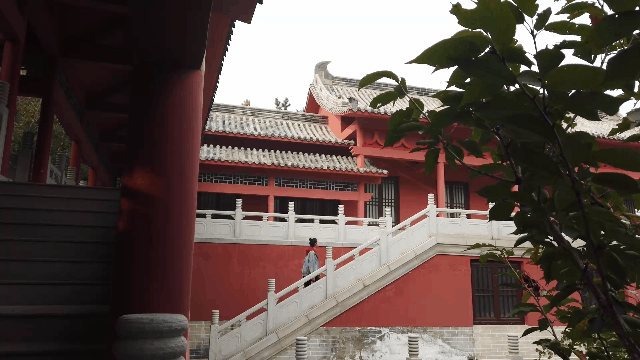 ????雕梁畫(huà)棟的亭臺(tái)樓閣大多被郁郁蔥蔥的樹(shù)環(huán)抱,從臺(tái)階拾級(jí)而上,紅墻也露出頭來(lái)。