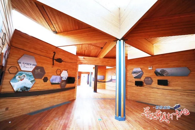 ????這里更像是大天鵝的“檔案館”,從天鵝種類、特征、習性到天鵝的遷徙之謎,在這里都可以找到答案,在這里,你還可以傾聽不同大天鵝的叫聲,也可以戴上VR眼鏡,親自體驗大天鵝的遷徙之路。