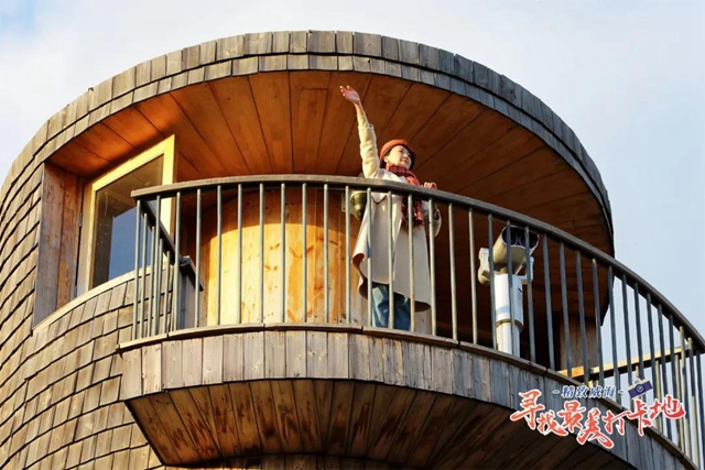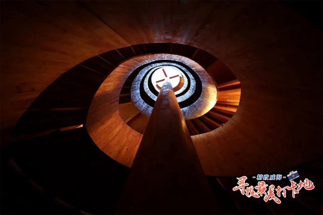 ????觀鳥塔是純木質結構,推開門便能聞見陣陣木香,橘色的陽光從塔頂的窗口灑下,踩著吱吱呀呀的旋轉樓梯一路向上,推開門的剎那,像是打開了一個全新的世界。