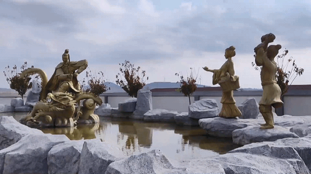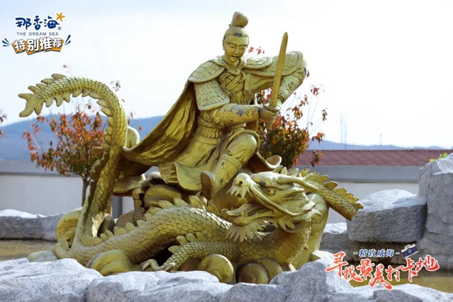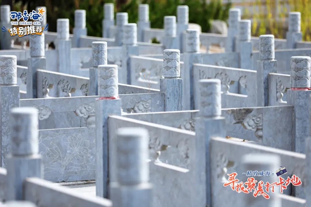 ????民俗園遍布著形態各式的龍雕塑,大門臺階中央的浮雕氣勢恢宏,每個石柱上的雕塑都軟萌可愛,而在房檐上相對稱的龍則多了幾分威嚴感。