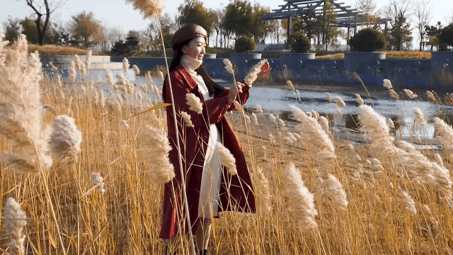 ????從蘆葦叢里走一遭,幾小撮蘆花落在柔軟的針織衫上,那是深秋做的記號。站在比肩同高的蘆葦?shù)乩铮S便凹上幾個造型,拍出來都是秋季時尚大片。