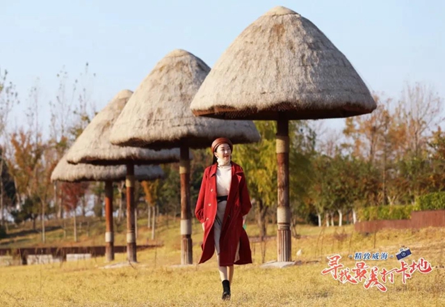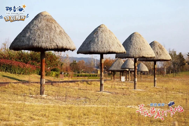 ????不遠處有幾座錯落有致的海草亭,像是深秋的守望者,披著天蓋著云,甚是好看。在起風(fēng)的深秋里,裹緊風(fēng)衣慢行其中,也別有一番心境。