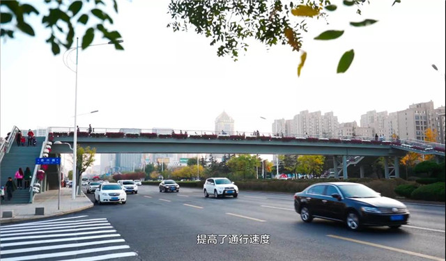??????4座人行過街天橋,實現了人車分流,提高了通行速度,解決了擁堵問題,成為廣大居民的安全通行線。