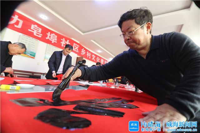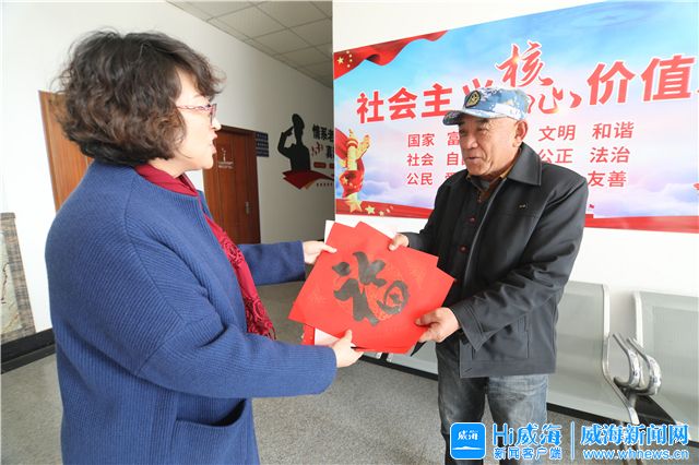 Hi威??蛻舳擞?/strong> 23日上午,省派“加強農場基層黨組織建設”工作隊與環翠區微力社會工作服務中心,攜手我市10余位書法家和書法愛好者,一同走進經區崮山鎮皂埠社區黨群服務中心,舉辦助力鄉村文化建設送春聯活動,為社區里的老黨員和居民寫春聯、送祝福。