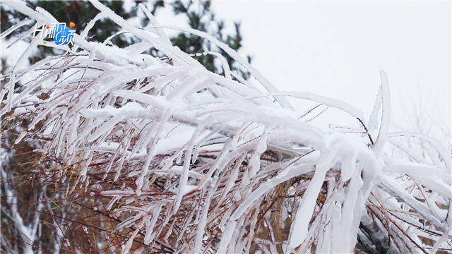 風(fēng)雪過后,氣溫驟降。在經(jīng)區(qū)悅海公園的海岸邊上,形成了難得一見的冰凇美景。冰凇輕盈潔白,附著在欄桿、樹木等物體上,宛如瓊樹銀花,清秀雅致,晶瑩剔透。