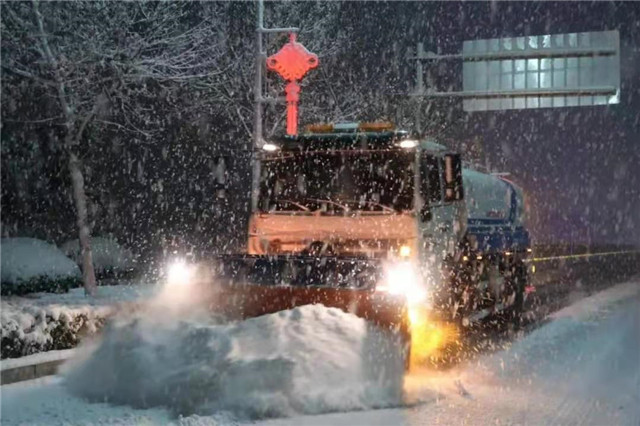 ??????為應(yīng)對(duì)此次風(fēng)雪天氣,南海新區(qū)各相關(guān)部門嚴(yán)陣以待,提早調(diào)試、調(diào)度好掃雪鏟冰設(shè)備。從1月6日晚間23時(shí)至7日上午,南海新區(qū)相關(guān)部門根據(jù)雪情對(duì)轄區(qū)各主干道進(jìn)行不間斷除雪作業(yè),20輛專業(yè)作業(yè)車輛、5輛勘察車輛和200多名清雪人員輪番上陣,利用機(jī)械對(duì)道路快、慢車道的積雪進(jìn)行清掃,成堆的積雪及時(shí)組織車輛外運(yùn)。
