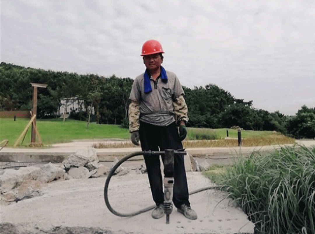??????去年盛夏,在海島采訪時,碰到一位可愛的電鉆工人。