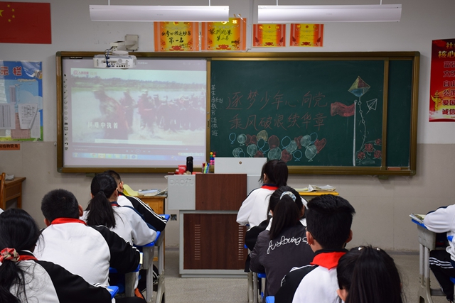 ????在學校的組織下,各班級同步開展“逐夢少年心向黨,乘風破浪續華章”開學第一課主題班會。