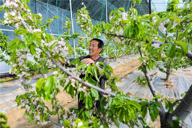 ??????在太公緣農耕部落北面不遠處的白鹿村,威海仙果仙園現代農業科技股份有限公司已經在院內種上了6個大棚的櫻桃樹。這里的櫻桃樹長勢喜人,滿目綠葉,郁郁蔥蔥,櫻桃花如同簇簇白雪綴滿枝頭。