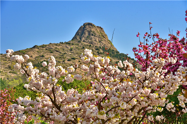 位于榮成東南沿海的石島赤山風景區,是威海主要賞櫻地之一。這里種植了數萬株十幾個品種的櫻花。由于地處沿海,且海拔較高,景區櫻花開放時間較內陸地區晚了一周左右,4月下旬至5月初是最佳觀賞期。每年這一時間,赤山風景區會舉辦主題賞櫻活動,成為威海春天旅行的一張名片。特別是法華寺附近的櫻花,山寺櫻花兩相映,是暮春打卡的好去處。
