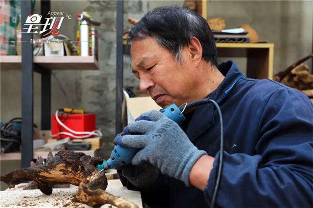??????良材易找,朽木難尋。更多時候,郭友之會扛著镢頭走到荒山老林里,自己去刨那些枯死的樹根,每次都累得汗流浹背,他卻樂此不疲。
