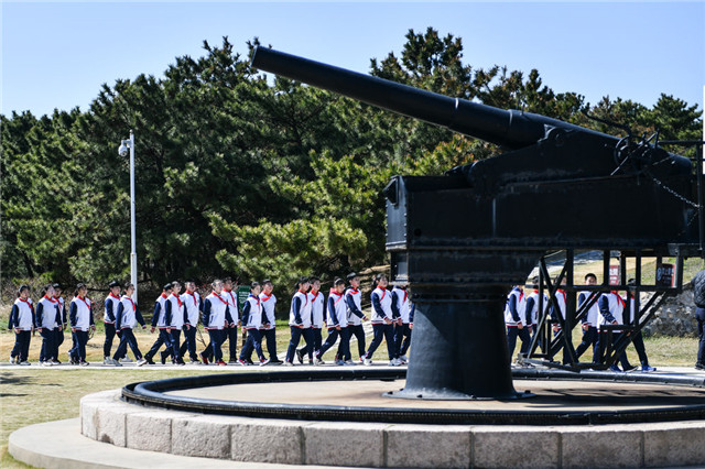 下午2點,當日課程正式開始。參加活動的50余名學生登上東泓炮臺,跟隨現場講解回顧甲午戰爭的慘痛教訓;隨后,同學們又來到總體國家安全觀教育展館,在參觀學習中反思近代以來國家安全歷史教訓,了解新中國成立以來為維護國家政治、經濟、軍事、科技、文化等安全作出的偉大實踐,將堅持總體國家安全觀的理念根植心中。