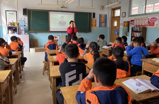 ????班會上,各班主任先從思想層面與學生一同探討愛眼護眼的重要性。同學們紛紛表示眼睛是人類感官中最重要的器官,近視眼會給我們的生活帶來很多不便,所以大家一定會學會愛惜自己的眼睛。通過師生的共同討論,學生們進一步認識到保護眼睛、規范做眼操的重要性。最后,班主任老師跟隨視頻重新對學生的坐勢、穴位、動作、節奏等幾個方面進行規范性指導。做操過程中,同學們個個輕閉雙眼,規范坐姿,聚精會神地把每一個動作都做得精準規范,整個班級整齊而協調。