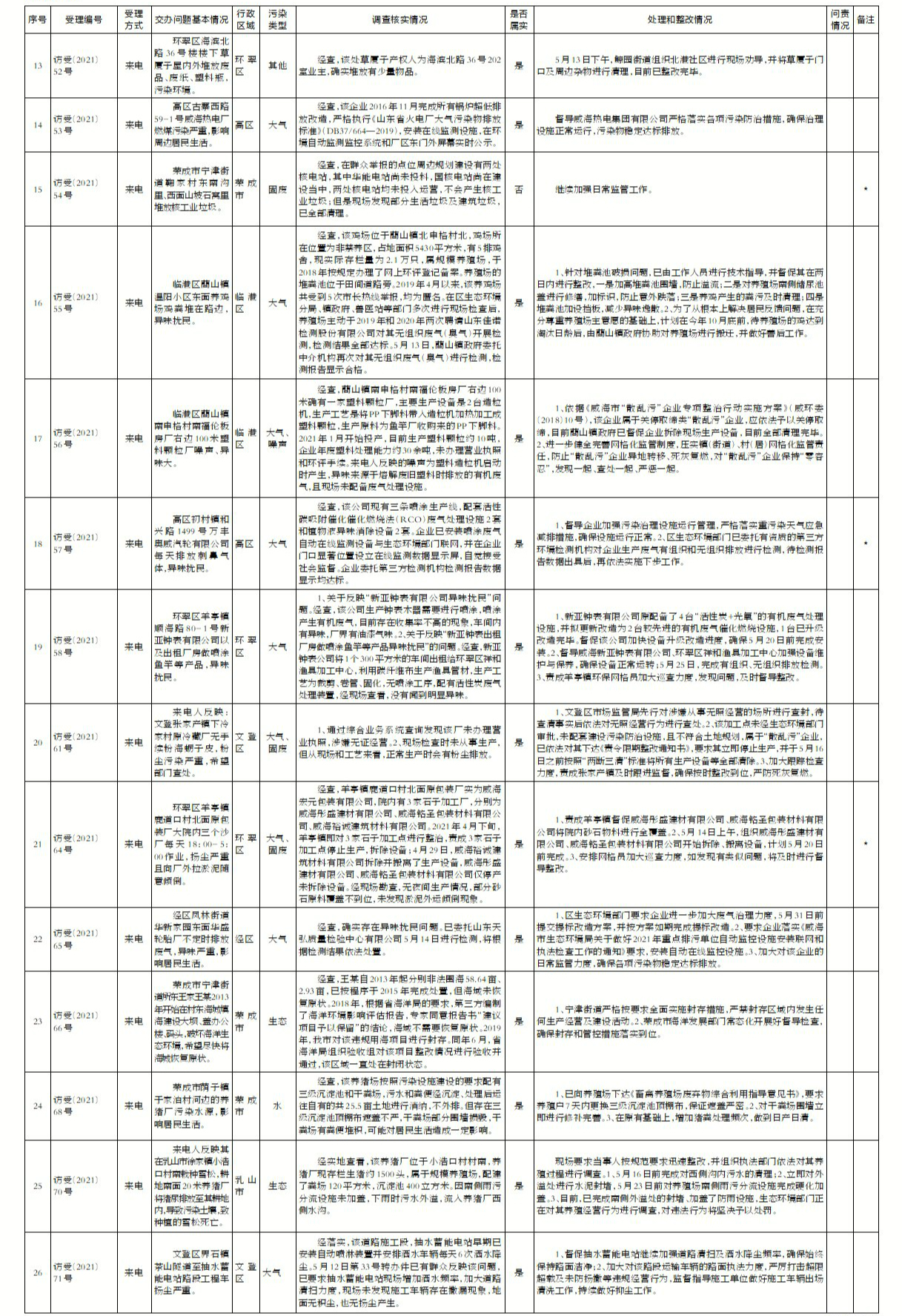 山東省第五生態環境保護督察組信訪舉報件及邊督邊改公開情況(第二批)