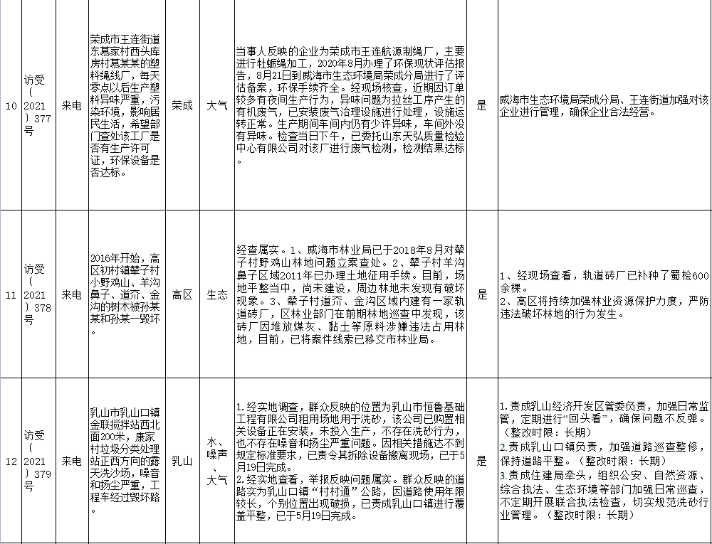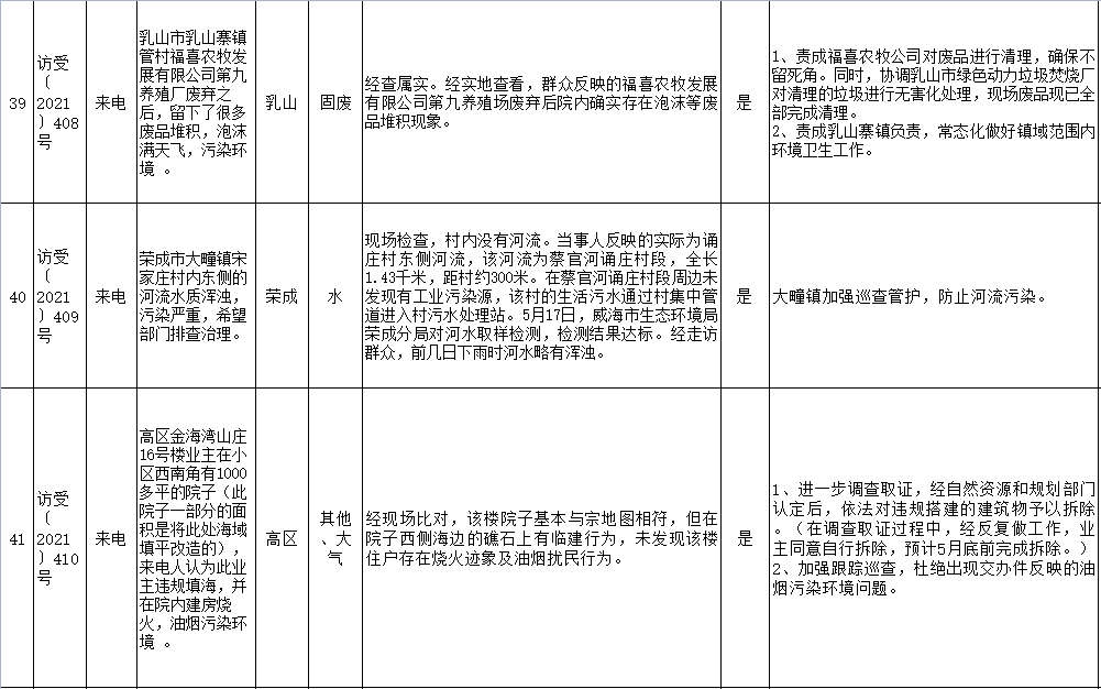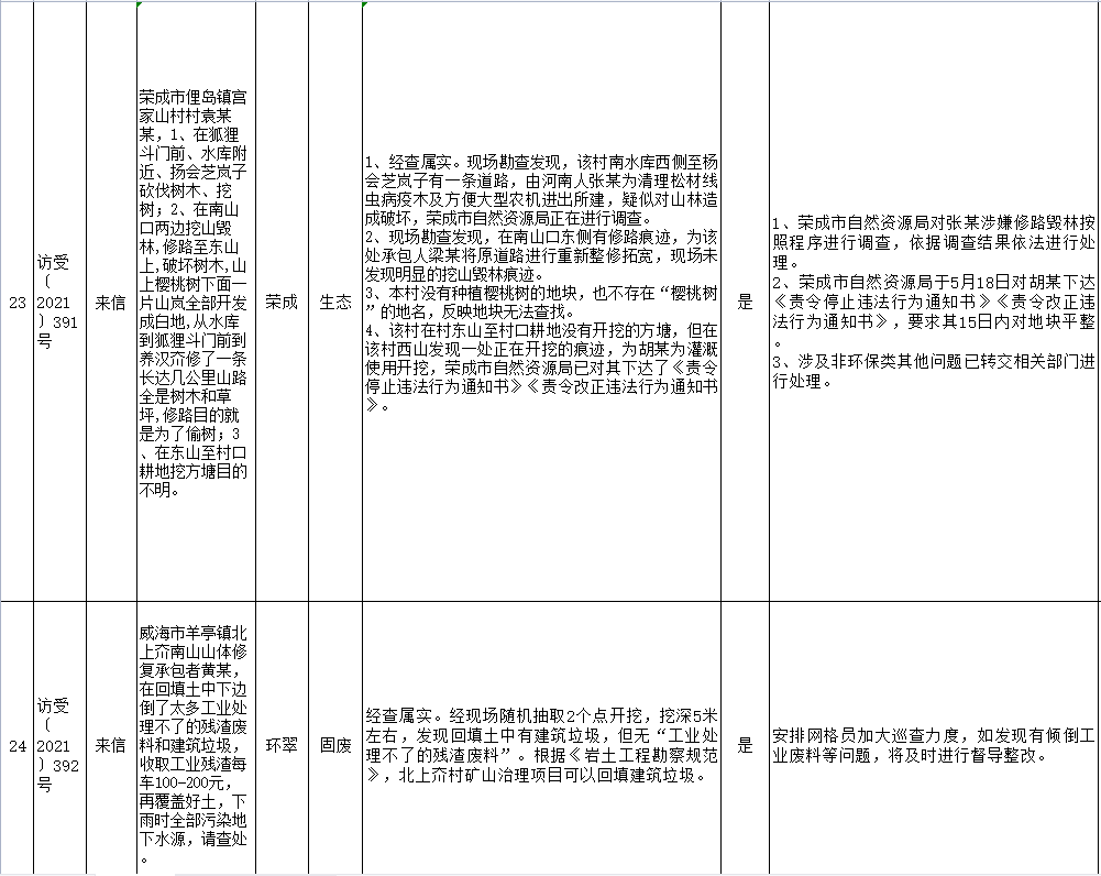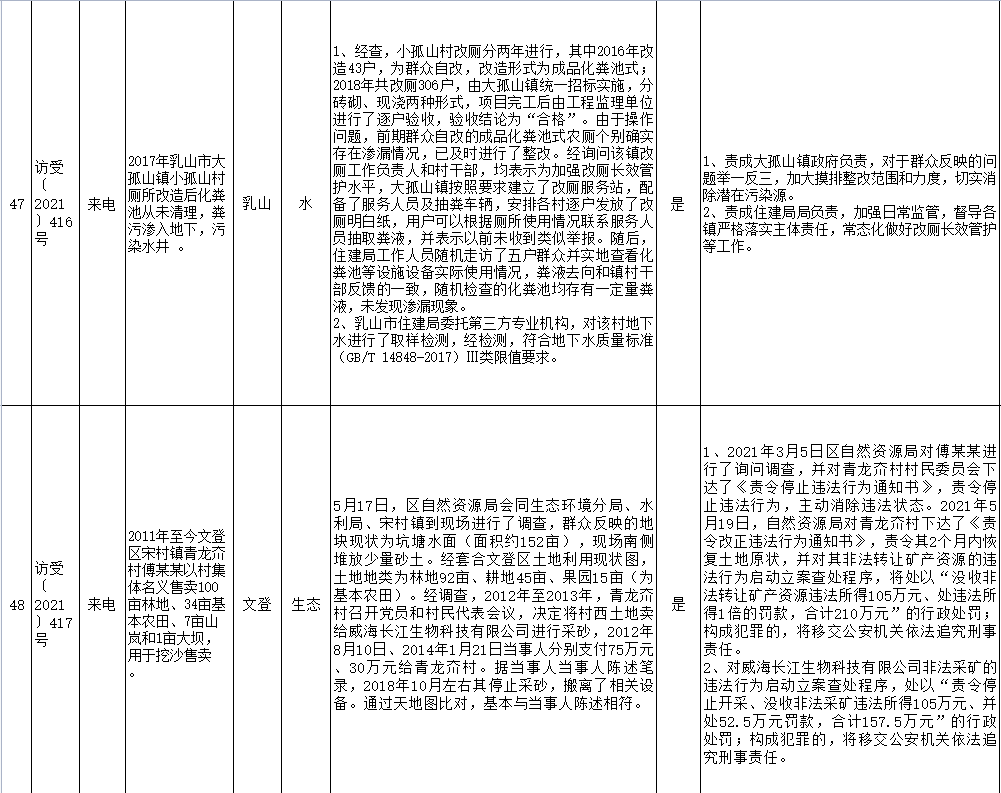 山東省第五生態環境保護督察組信訪舉報件及邊督邊改公開情況(第六批)
