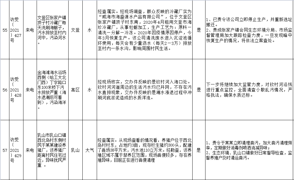 ??????山東省第五生態環境保護督察組向我市交辦第六批信訪件共計63件(重復件4件)。截至5月23日12時,已全部辦結。其中屬實56件(重復件4件),不屬實7件。