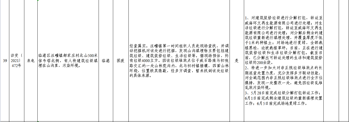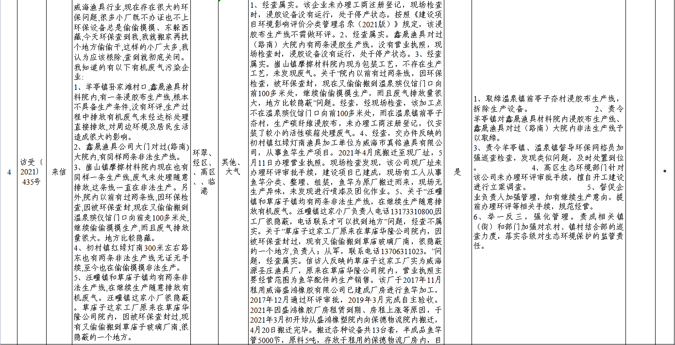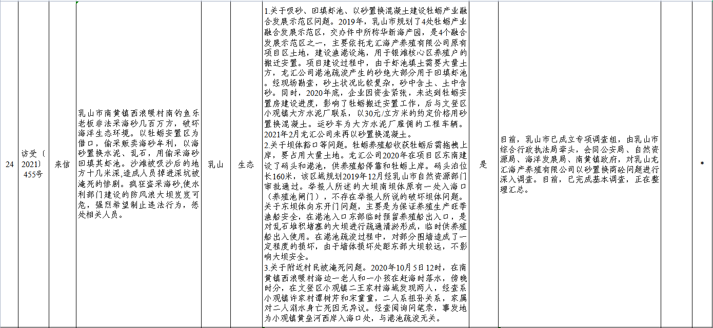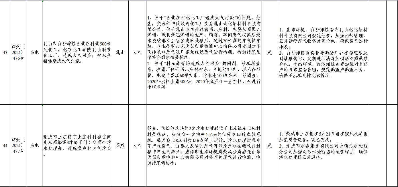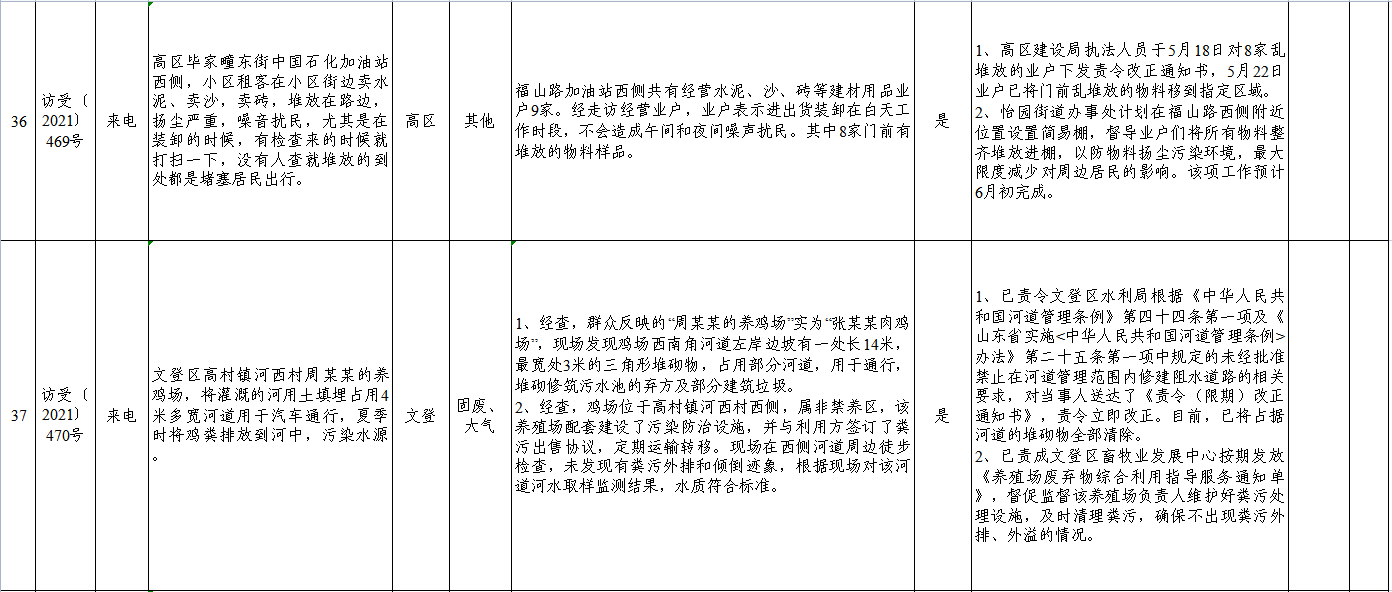 山東省第五生態環境保護督察組信訪舉報件及邊督邊改公開情況(第七批)