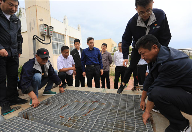 ????在威高集團中水回用項目現場,督察組察看了工業廢水回收再利用情況,了解了該項目工藝流程和日處理規模,指出要進一步提高再生水的利用率,加快推進污水資源化。