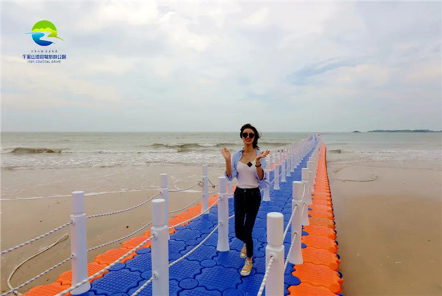 ??????不遠處,由沙灘邊延伸至海里的漂浮棧道,在等待你來挑戰膽量。柔軟的棧道因海浪的搗亂而輕輕搖晃,行走其間,不免有些緊張,但這非但沒有妨礙好心情,反倒增添了些許激動情緒,讓人又驚又喜。