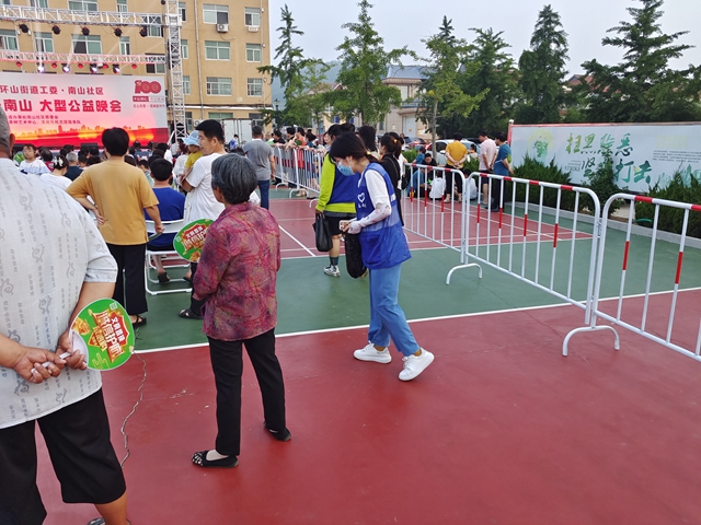 ???7月10日晚,文登區環山街道辦事處南山社區舉辦了“紅色七月 歡樂南山”大型公益晚會。文登區委編辦作為南山社區的報到單位,積極承擔起晚會現場的志愿服務活動,志愿者們負責活動現場秩序維護、抽獎券的發放、獎品的頒發工作;活動結束,文登區委編辦志愿者組織觀眾有序離場后,收拾活動會場的桌凳,清掃活動會場的環境衛生。(通訊員 隋思雨)