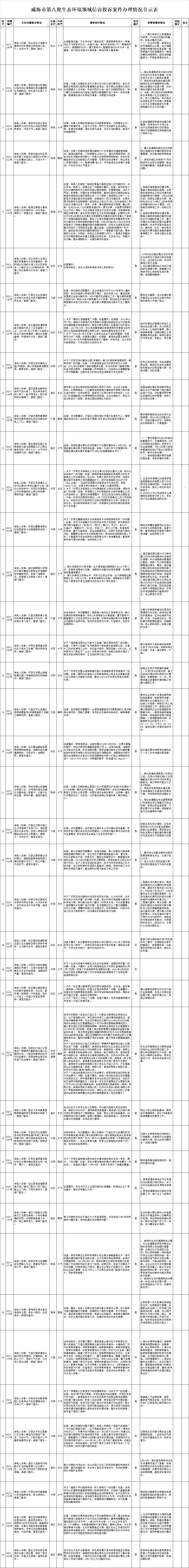 ??????威海市第八批生態環境領域信訪投訴案件交辦清單共計46件。截至7月26日17時,已全部辦結。其中屬實41件,不屬實5件。