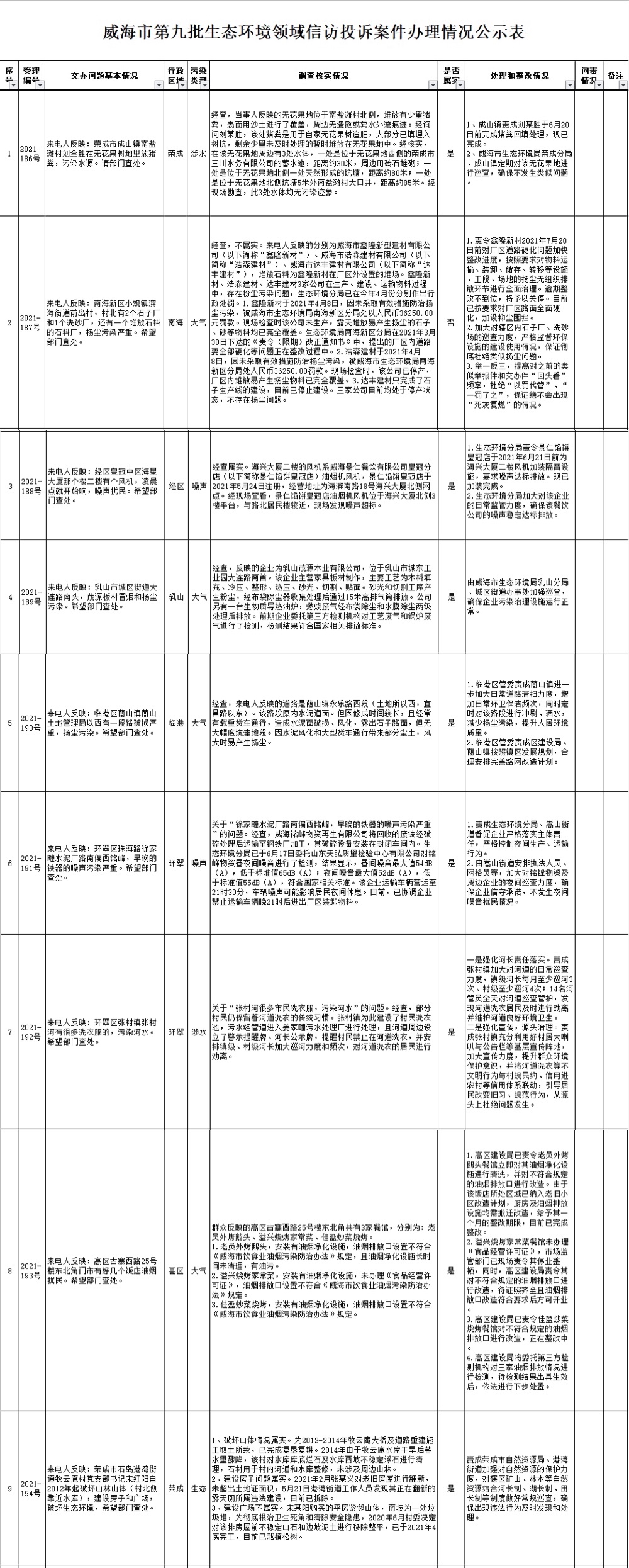 威海市生態環境領域信訪投訴案件及邊督邊改公開情況(第九批)
