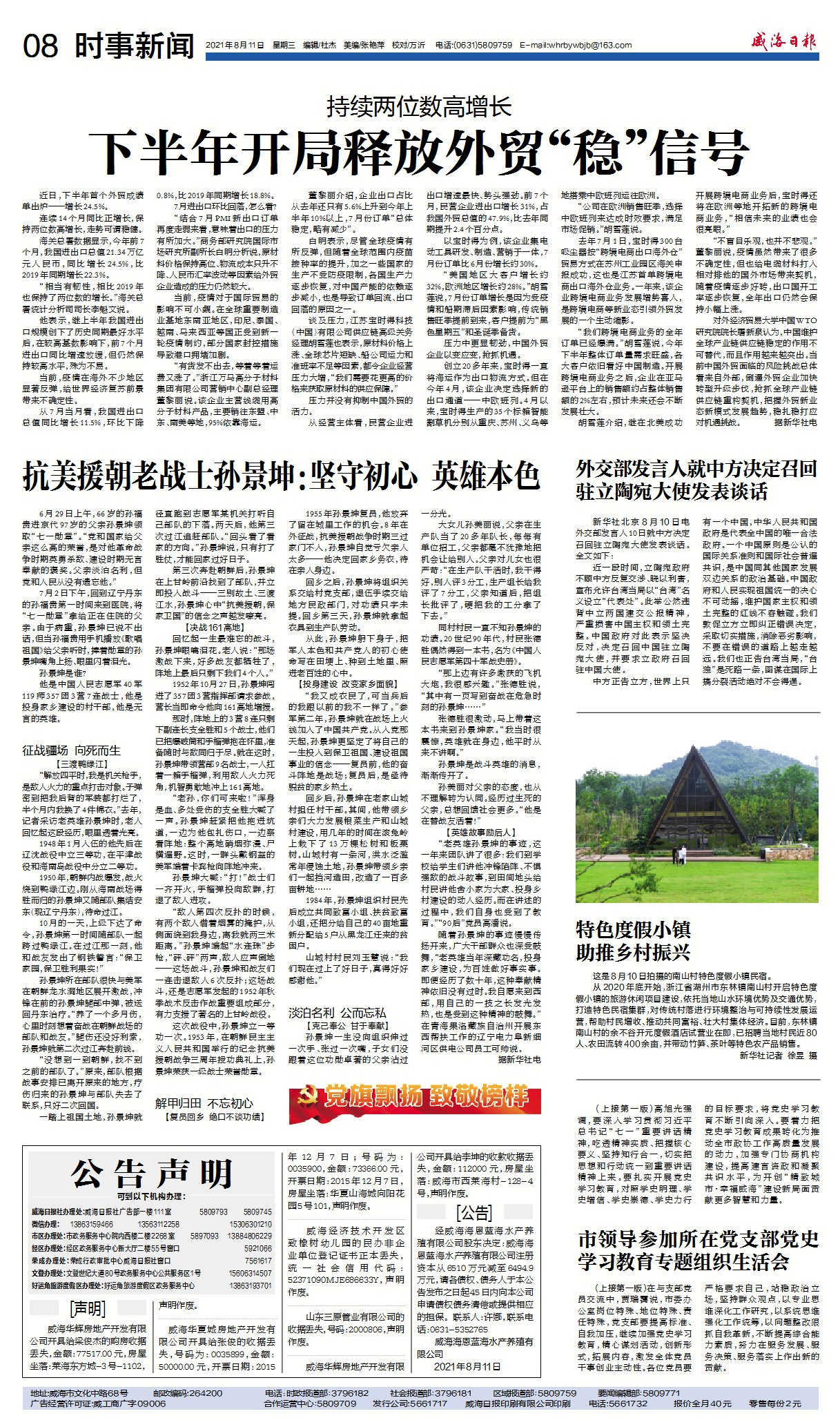 威海日報(bào) 2021-08-11