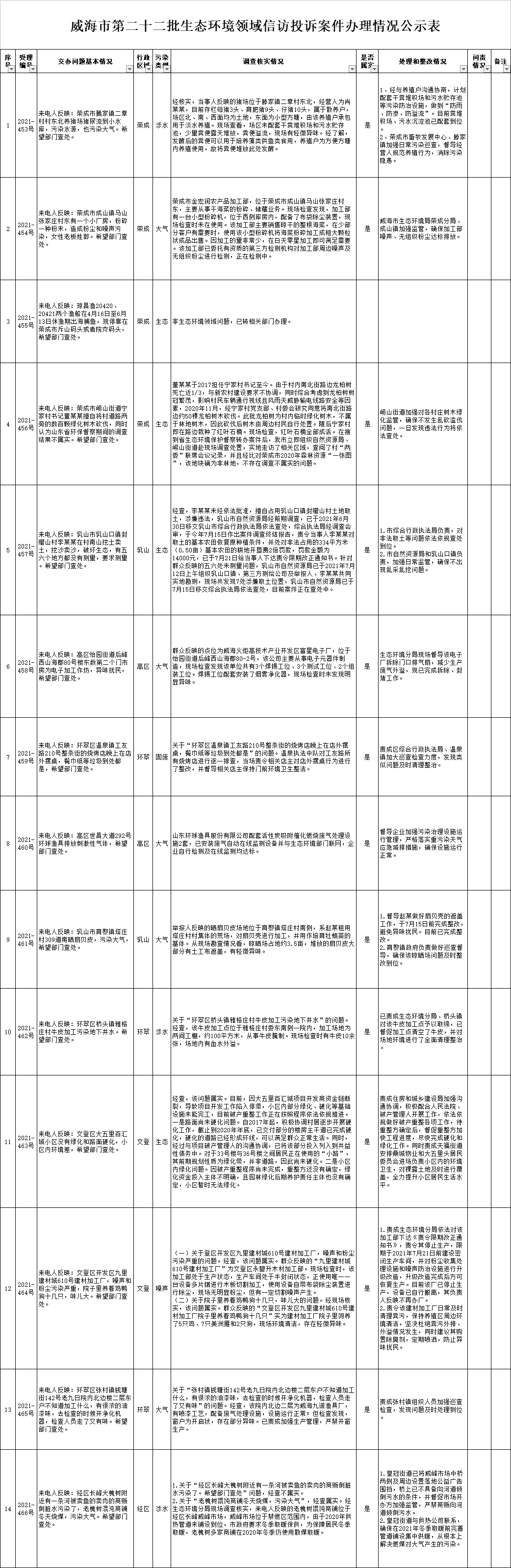 威海市生態(tài)環(huán)境領(lǐng)域信訪投訴案件及邊督邊改公開情況(第二十二批)